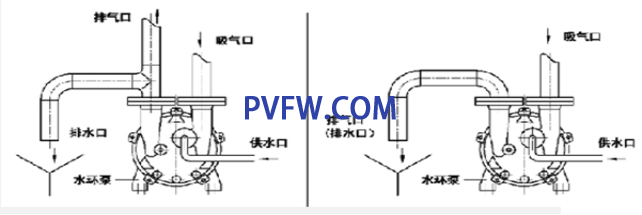 液环真空泵排出的水进入大的循环水池或直接排走。这种供水及排水方式连接方便,使用简单,在实际应用中被较多地采用。